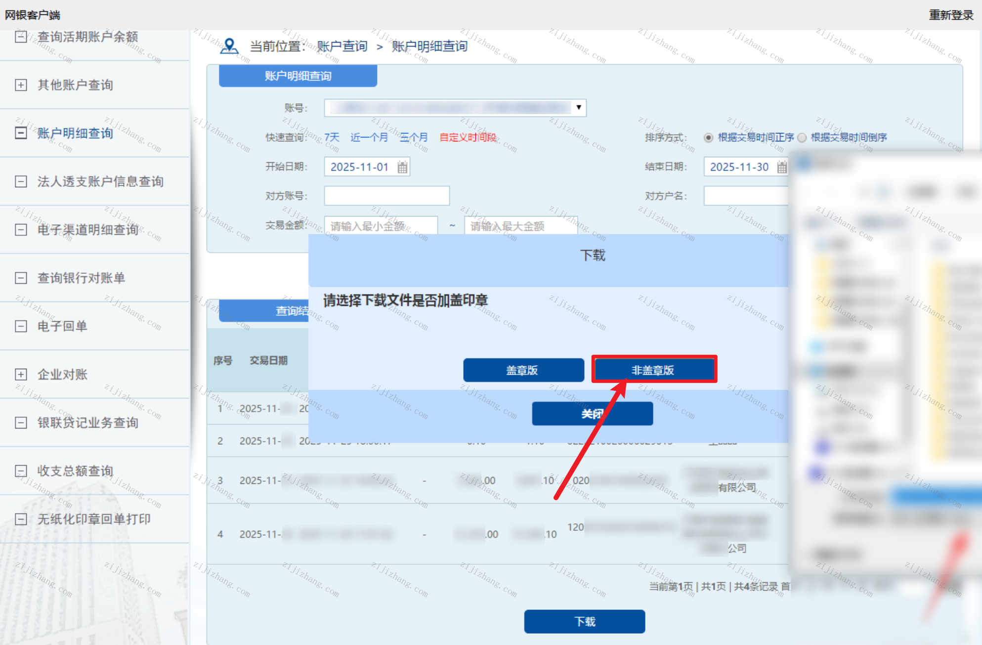 第四步:点击【非盖章版】,选择好保存的路径后,点击【保存】即完成银行明细导出。