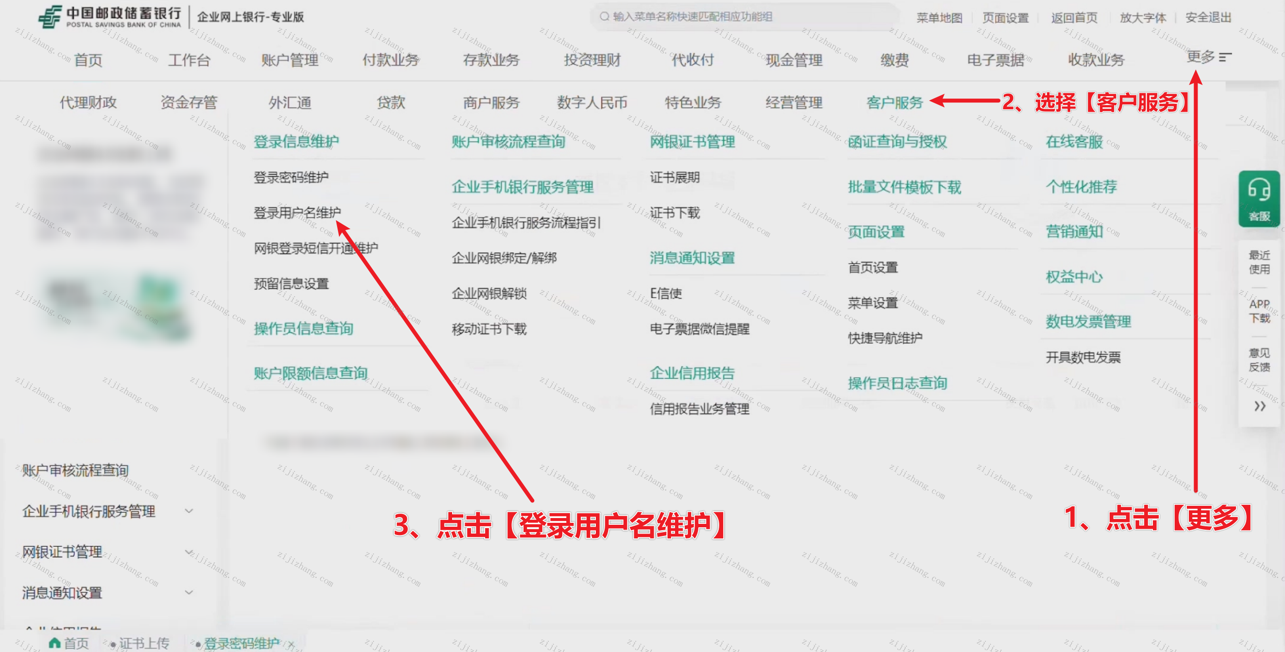 1、首先使用Ukey登录网银Ukey专业版后,点击界面上方的【更多】,找到【客户服务】,点击【登录用户名维护】