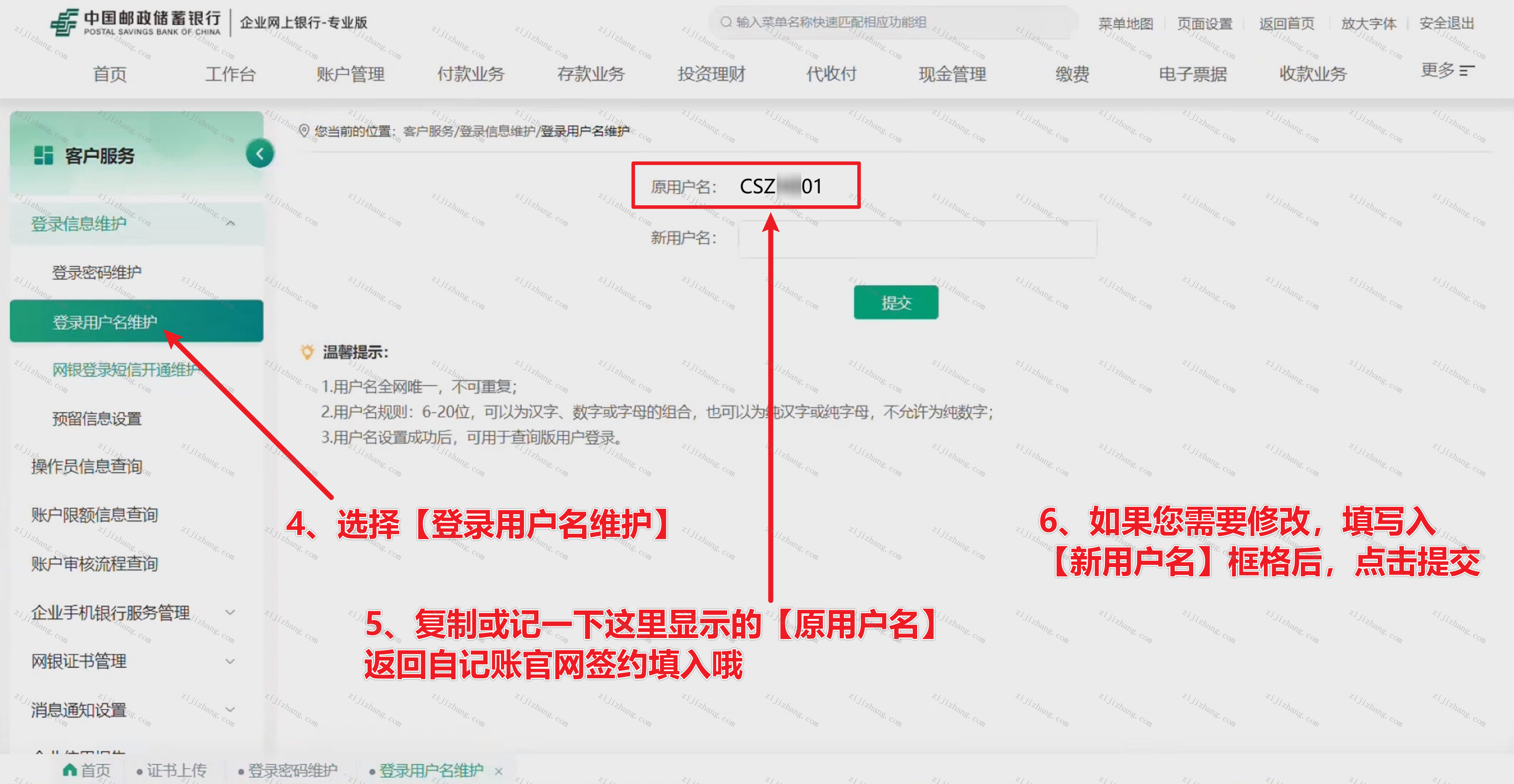 注:如果提交成功了新用户名,您办理签约时,填写用户名要填写新的用户名